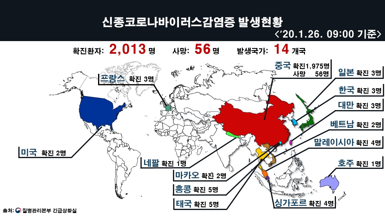 신종 코로나 바이러스 감염증 환자 총 2,010명(사망 56명)